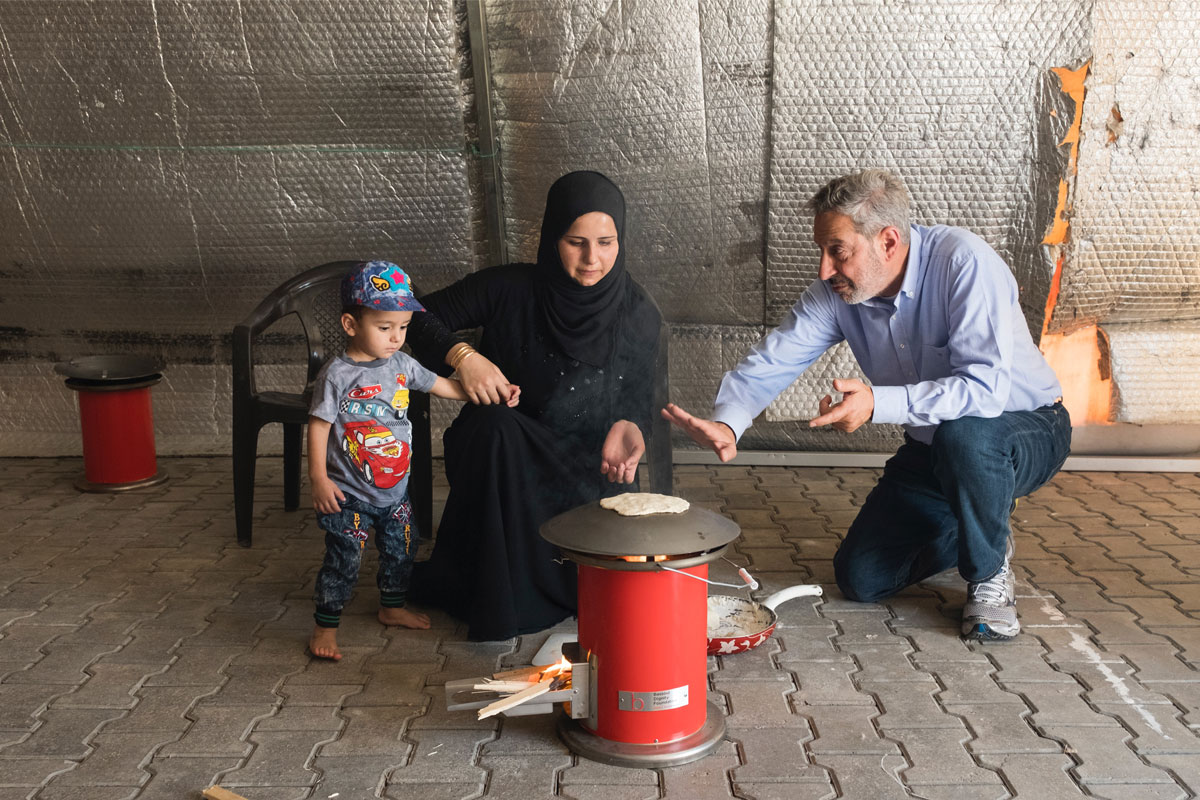 Syrian refugee camps in Lebanon accommodate around 1.5 million families, out of which 80% are women and girls. On a normal day, they spend their time searching for wood to be able to prepare meals for their families. The foundation created a unique multifunctional oven. Beyond cooking, this appliance can charge a cellphone through heat transfer, without using electricity. The goal is to free women and girls to seek employment and education.